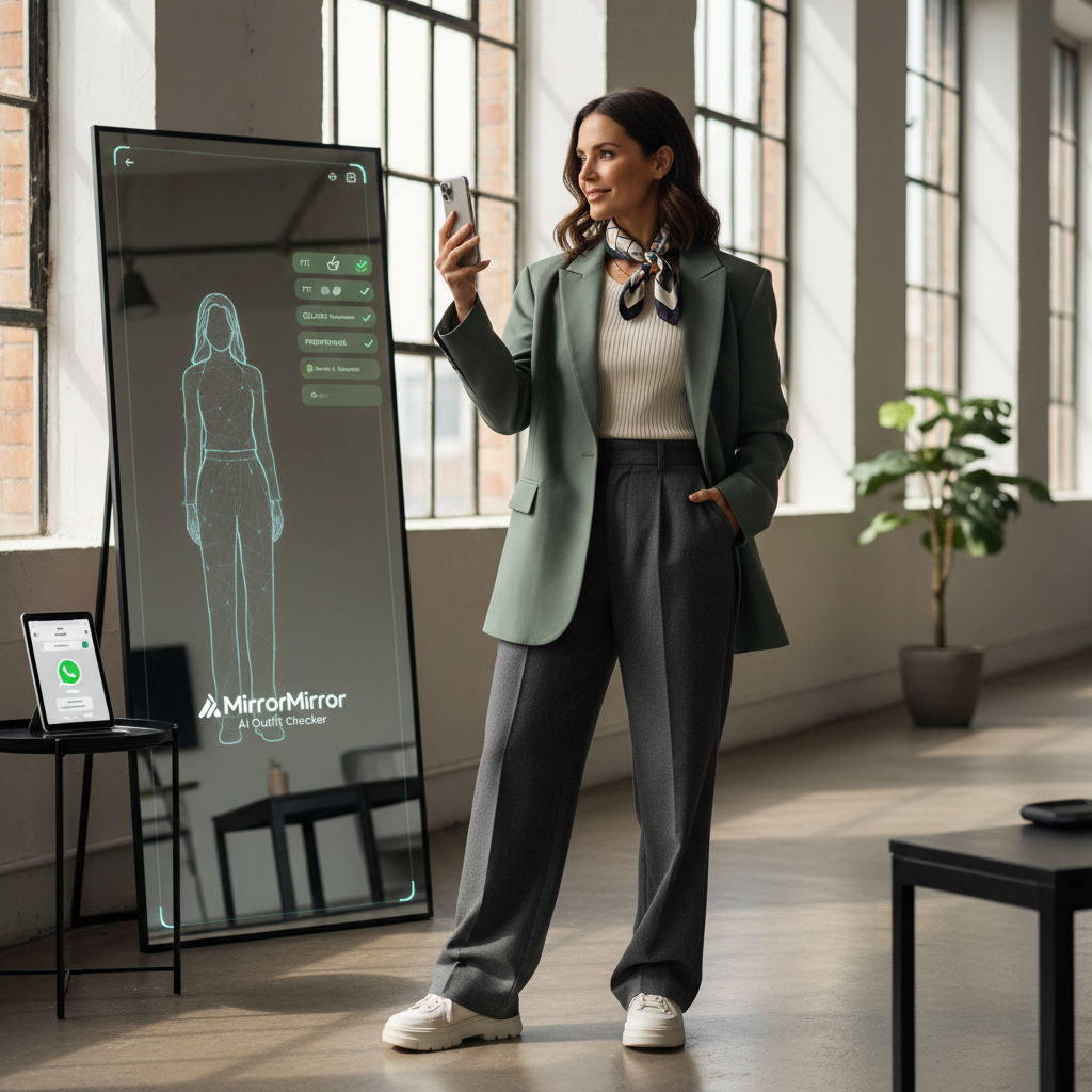 Not sure if your outfit works? MirrorMirror checks your fit, colors, and proportions in seconds via WhatsApp.