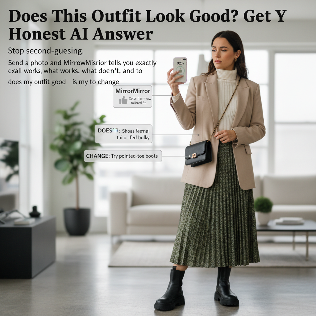Stop second-guessing. Send a photo and MirrorMirror tells you exactly what works, what doesn't, and what to change.