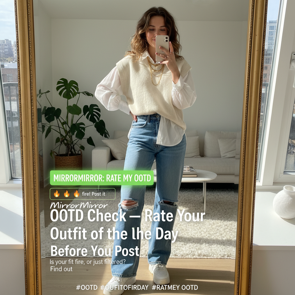 Run your OOTD through MirrorMirror before Instagram. An 8+ means it's post-worthy — below that, swap one piece.